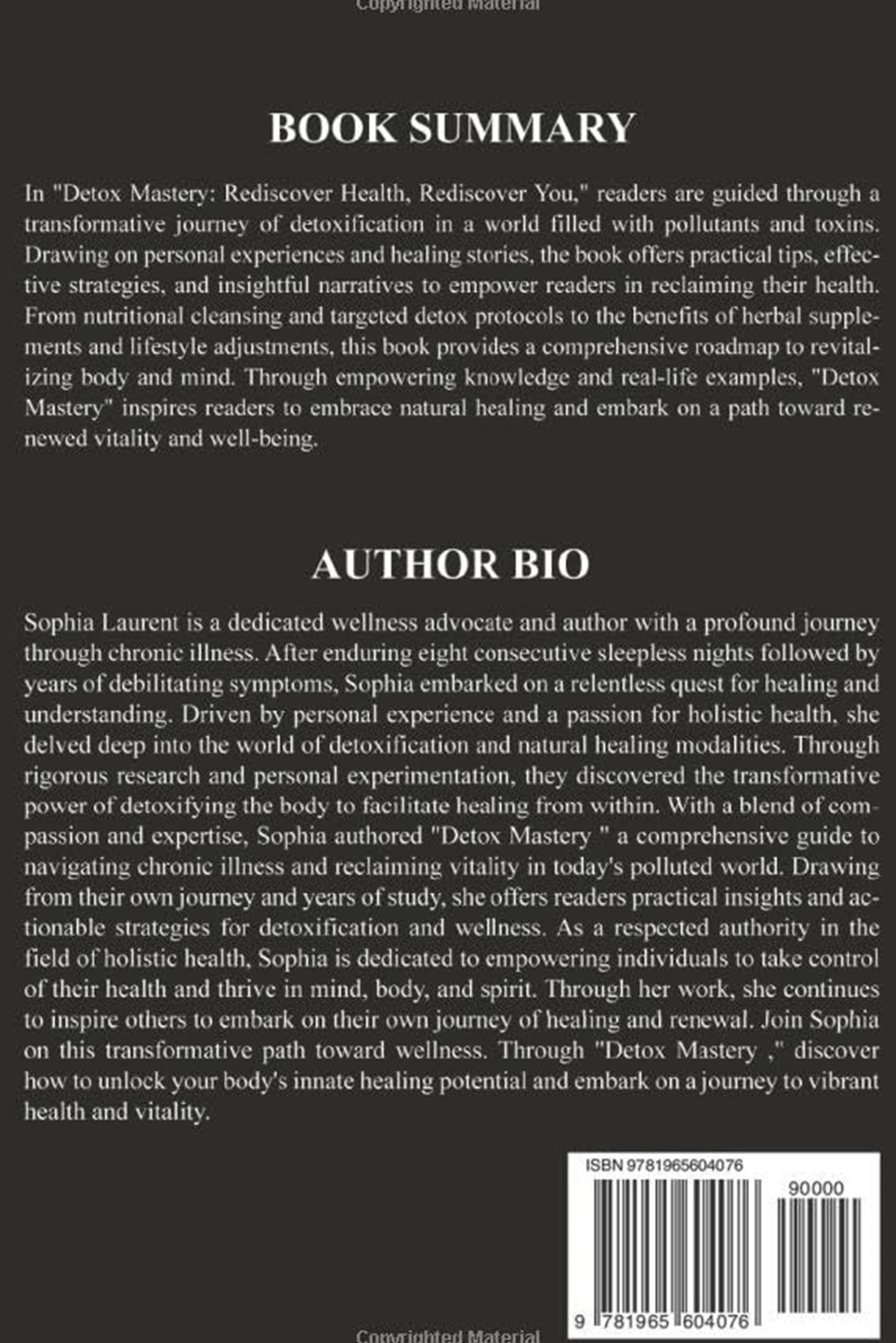 In the highly anticipated continuation of Detox Mastery, this new volume, Rediscover Health… Rediscover You, dives deeper into the transformative journey of detoxification. Building on the foundational principles of Volume One, this book blends personal narrative with actionable insights, offering a comprehensive guide to cleansing and healing in today’s increasingly polluted world.