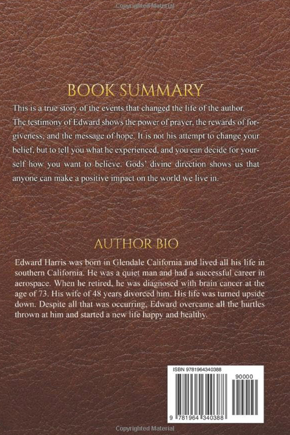 This is the true story of events that changed the life of the author. The testimony of Edward shows the power of prayer, rewards of forgiveness and the message of hope.