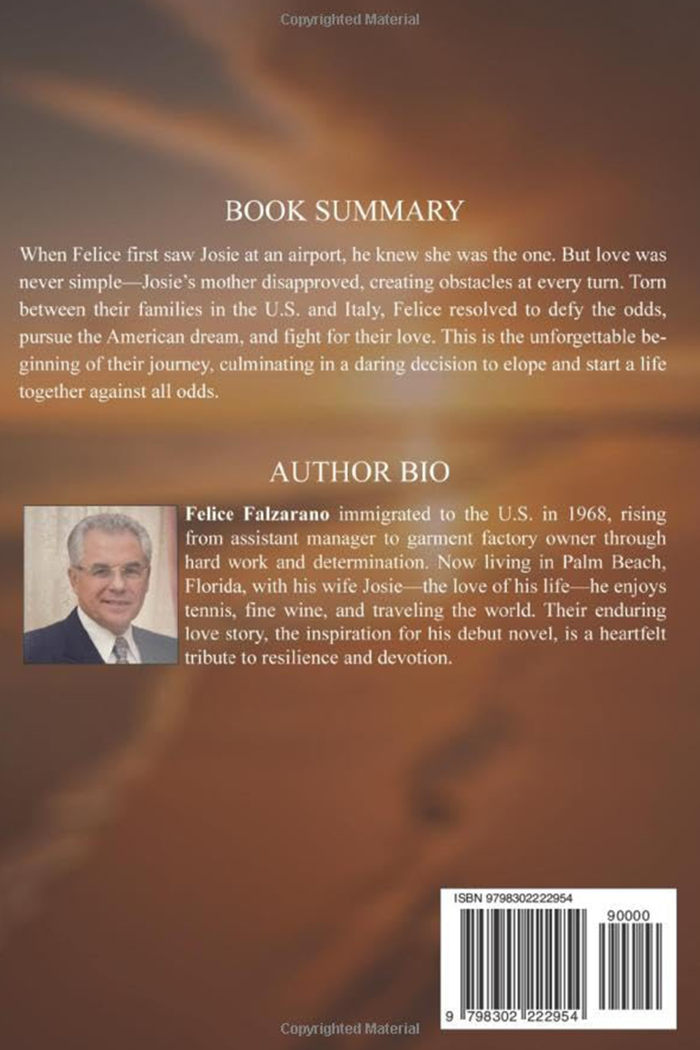When Felice first saw Josie at an airport, he knew she was the one. But love was never simple—Josie’s mother disapproved, creating obstacles at every turn. Torn between their families in the U.S. and Italy, Felice resolved to defy the odds, pursue the American dream, and fight for their love. This is the unforgettable beginning of their journey, culminating in a daring decision to elope and start a life together against all odds.