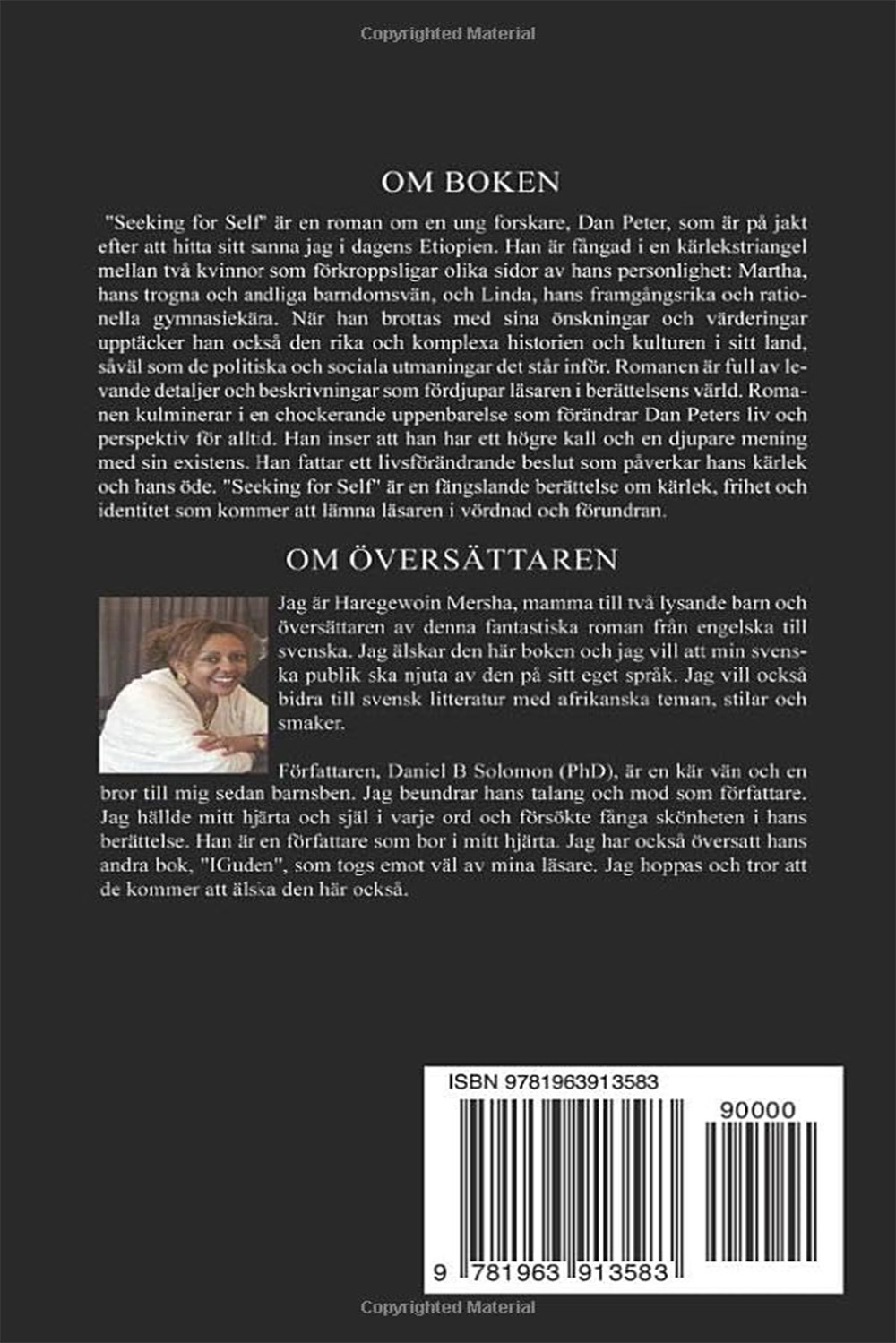 Seeking for Self är en roman som utforskar den existentiella krisen för Dan Peter, en ung man som är det slits mellan två kvinnor som förkroppsligar hans intellekt och intelligens. Romanen skildrar hans inre konflikt som ett romantiskt dilemma, då han känner sig dragen till båda men inte kan välja en. När han kämpar för att hitta sitt sanna jag, upptäcker han gradvis att världen han lever i är ingenting men en simulering, skapad av en mystisk enhet som styr hans öde. Romanen väcker frågor om verklighetens natur, identitet och fri vilja.