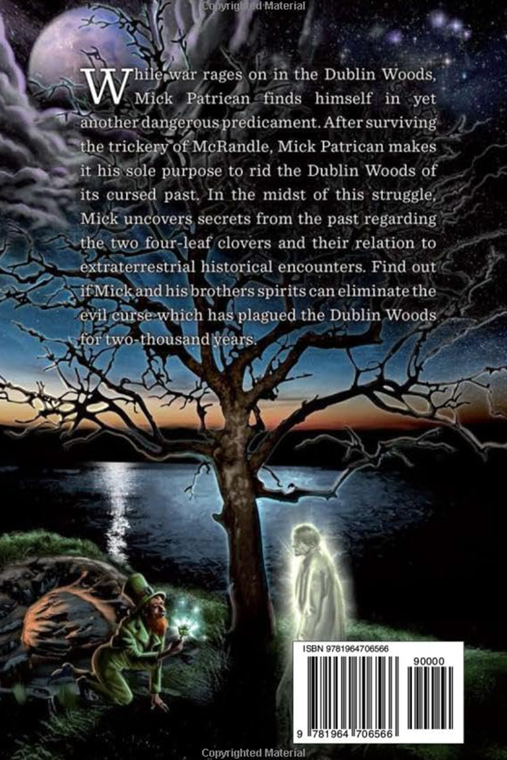 While war rages on in the Dublin Woods, Mick Patrican finds himself in yet another dangerous predicament. After surviving the trickery of McRandle, Mick Patrican makes it his sole purpose to rid the Dublin Woods of its cursed past. In the midst of this struggle, Mick uncovers secrets from the past regarding the two four-leaf clovers and their relation to extraterrestrial historical encounters. Find out if Mick and his brothers spirits can eliminate the evil curse which has plagued the Dublin Woods for two-thousand years.