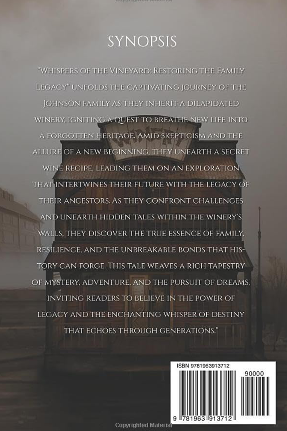 Whispers of the Vineyard: Restoring the Family Legacy” unfolds the captivating journey of the Johnson family as they inherit a dilapidated winery, igniting a quest to breathe new life into a forgotten heritage. Amid skepticism and the allure of a new beginning, they unearth a secret wine recipe, leading them on an exploration that intertwines their future with the legacy of their ancestors. As they confront challenges and unearth hidden tales within the winery’s walls, they discover the true essence of family, resilience, and the unbreakable bonds that history can forge. This tale weaves a rich tapestry of mystery, adventure, and the pursuit of dreams, inviting readers to believe in the power of legacy and the enchanting whisper of destiny that echoes through generations.